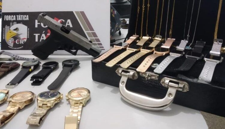 Um homem foi preso e uma adolescente apreendida pela Força Tática, suspeitos de terem roubado uma loja bijuterias localizada no bairro Jardim Tropical, em Rondonópolis. No boletim de ocorrência consta que com os suspeitos os policiais apreenderam duas bolsas com os produtos roubados, entre relógios e bijuterias. Na ação foi apreendida uma arma de fogo.