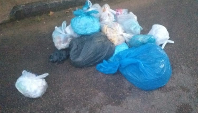 De acordo com uma mulher que não quis se identificar, os coletores estão fazendo a retirada dos lixos e deixando-os amontados em frente as casas, e em muitas das vezes passam cachorros que rasgam os sacos fazendo com que os resíduos fiquem espalhados pela rua deixando um forte odor.